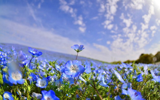 Những bông hoa Nemophila đem màu sắc của bầu trời xanh hòa lẫn vào đại dương đã cho ra một màu xanh đẹp đến nao lòng. Đến tour du lịch Nhật Bản du khách sẽ càng thêm thú vị khi có dịp tham quan cánh đồng hoa xanh nổi tiếng. Ngắm nhìn sắc xanh trong lành của những cành hoa mọc liền kề, có tác dụng giúp cho tinh thần thêm thoải mái, chữa lành những vết thương lòng. Những cánh hoa đung đưa trong gió, mang đến mùi hương thoang thoảng, dễ chịu sẽ khiến cho chuyến du lịch Nhật Bản thêm phần trọn vẹn.