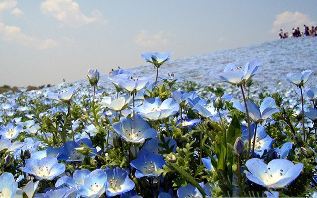 Công viên bờ biển Hitashi tọa lạc tại thành phố Hitachinaka quận Ibaraki, Nhật Bản được biết đến là một địa điểm du lịch Nhật Bản thần tiên với những thảm hoa đẹp dài ngút ngàn, cùng nhiều màu sắc sặc sỡ. Nhưng điều đặc biệt nhất vẫn là cánh đồng hoa xanh baby Blue eyes với màu sắc vô cùng đẹp mà lạ mắt và độc đáo khiến bất kỳ du khách nào cũng mơ ước một lần được ghé qua để chiêm ngưỡng. Hoa này thường nở vào thời điểm đất nước Nhật chuyển từ mùa xuân sang mùa hạ. Vào cuối tháng 4 đầu tháng 5 cũng chính là thời điểm lý tưởng nhất để ngắm nhìn những bông hoa nhuộm xanh cả cánh đồng Nhật Bản.