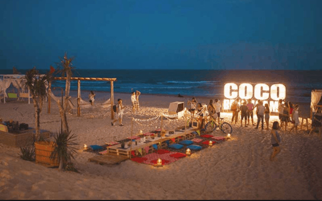 Đến với Coco Beach trong hành trình du lịch Phan Thiết du khách sẽ được trải nghiệm tự tay cắm và dựng cho mình những căn lều nhỏ, được thưởng thức những món hải sản tươi ngon vừa được kéo lưới, tham gia những trò chơi vận động ngoài trời, đêm đến nhảy múa vui chơi hết mình,…
